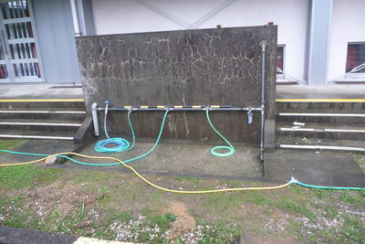 水は出ていますので、ご自由に利用ください。体育館前や保健室前に水道はあります。飲用の場合は念のため煮沸ください。