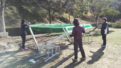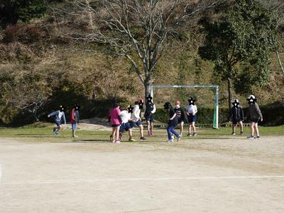 今日は、先生方でもう一つのサッカーゴールに網をかけました。