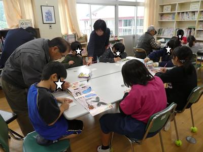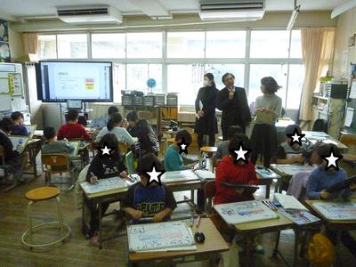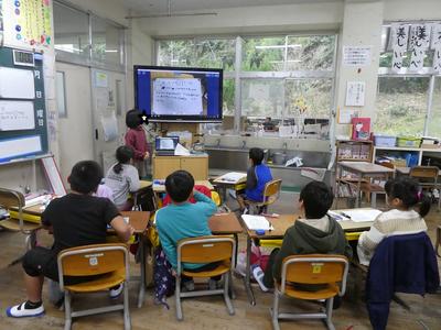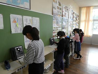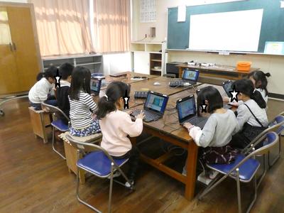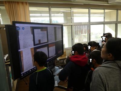 1年生と4年生が一緒にeライブラリで勉強しました。