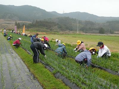 2~6年生は、サラダ玉ねぎの草取りをしました。