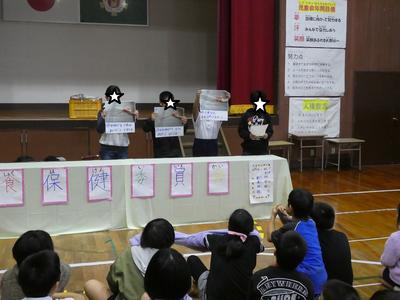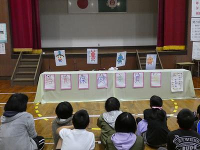 児童集会では、運営体育委員会による児童会年間目標の振り返りがありました。