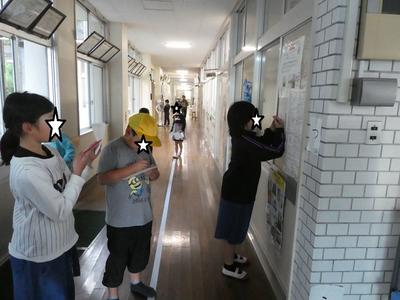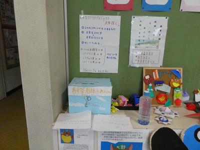 学校のあちこちにある文字を探して、つなげると、ある文章になります。