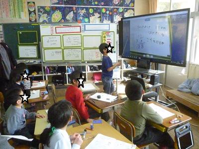 算数では、学習リーダーが中心となり、タブレットを使って学習を始めています。