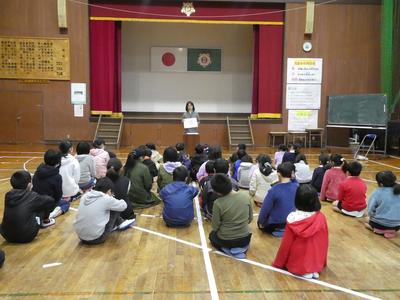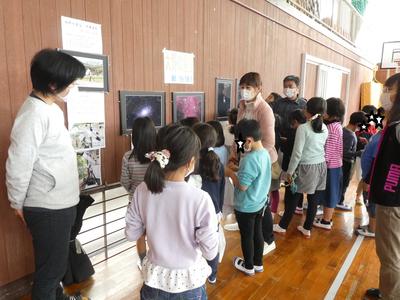 全校集会では、子ども美術展の表彰がありました。大野小では三人の児童が県の特選に選ばれました。