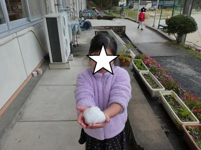 朝からうっすらと積もった雪を、子どもたちは集めて遊んでいました。