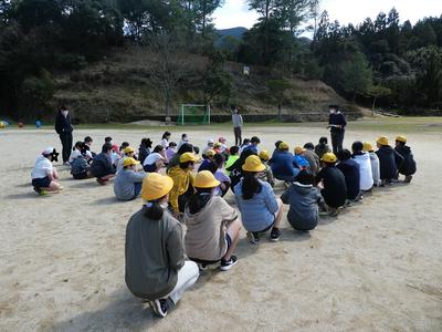 昼休み、地震の放送後、6年生が下級生を運動場に誘導し、お世話をしてくれました。