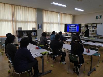 指導主事による東成瀬村小中学校視察報告が大野小図書室で行われました。
