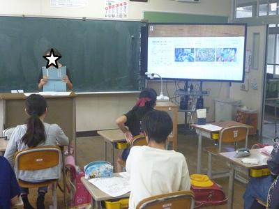 NIE活用で放送委員が、新聞の読み物資料(熊日童話)を昼の給食時間に放送で読みました。