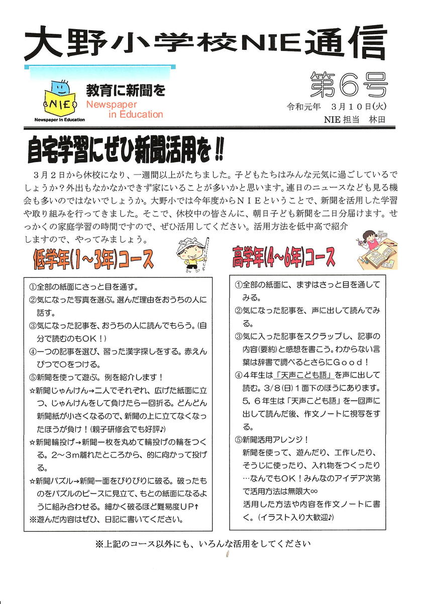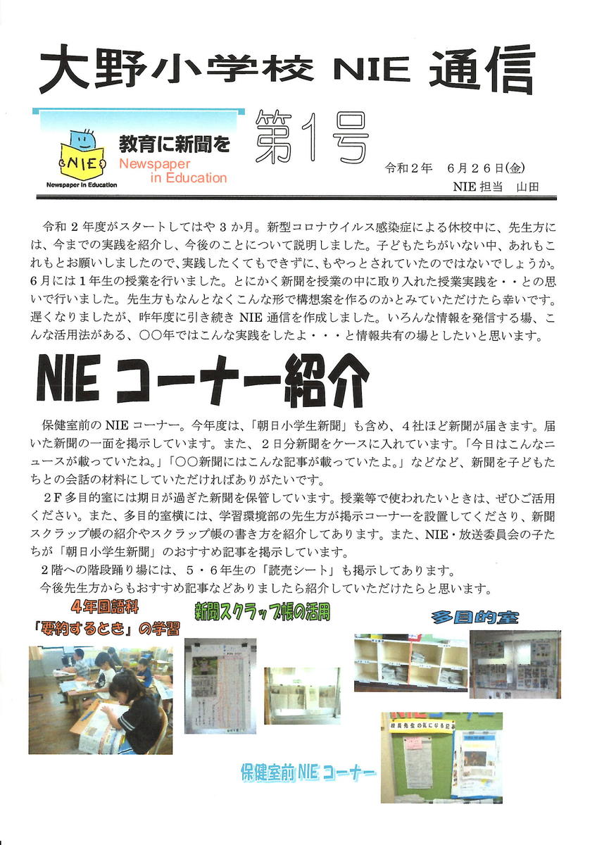 NIE担当の山田先生によるR2年度NIE通信第1号です。