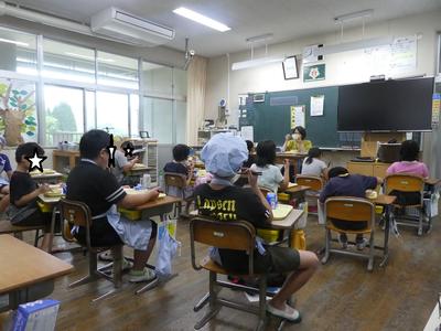 放送委員会が新聞記事からクイズを出すので、みんなは給食を食べながら考えます。