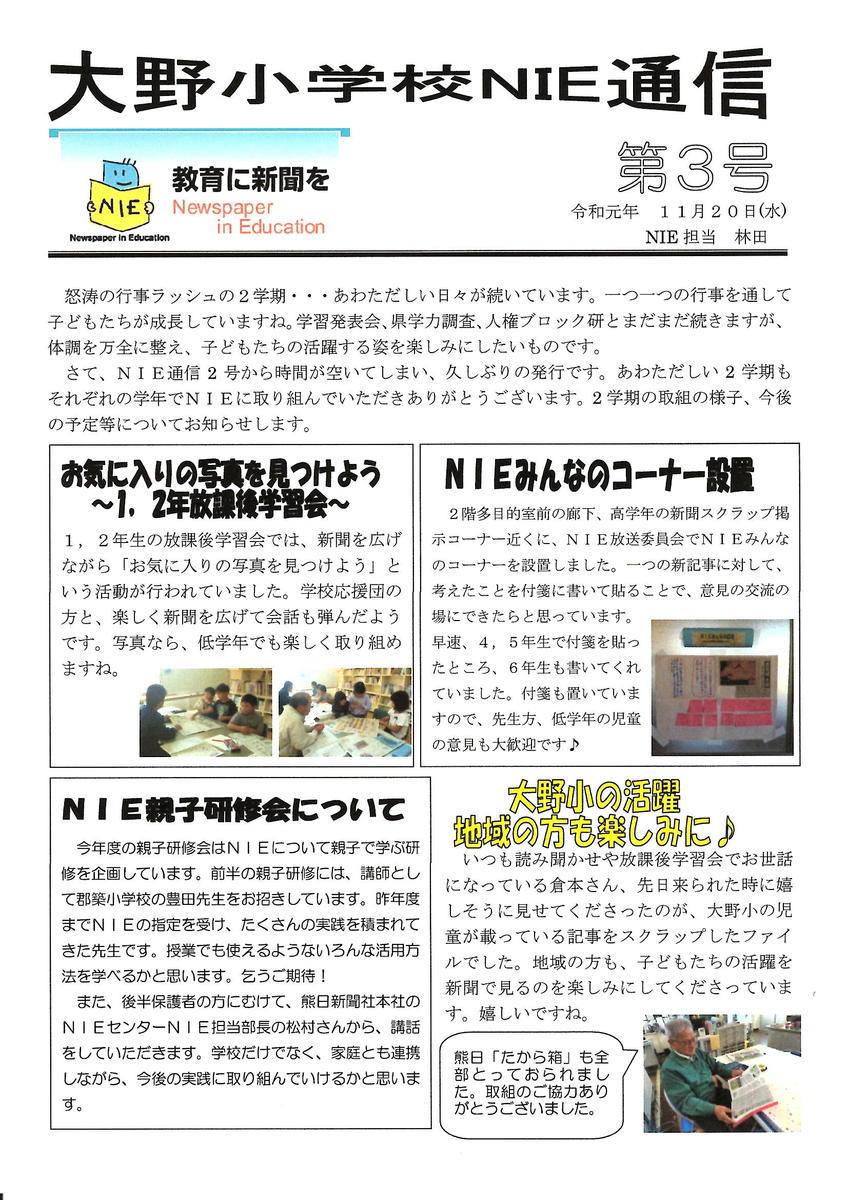帰宅後、さっそくNIEを実施された家庭があったようです。