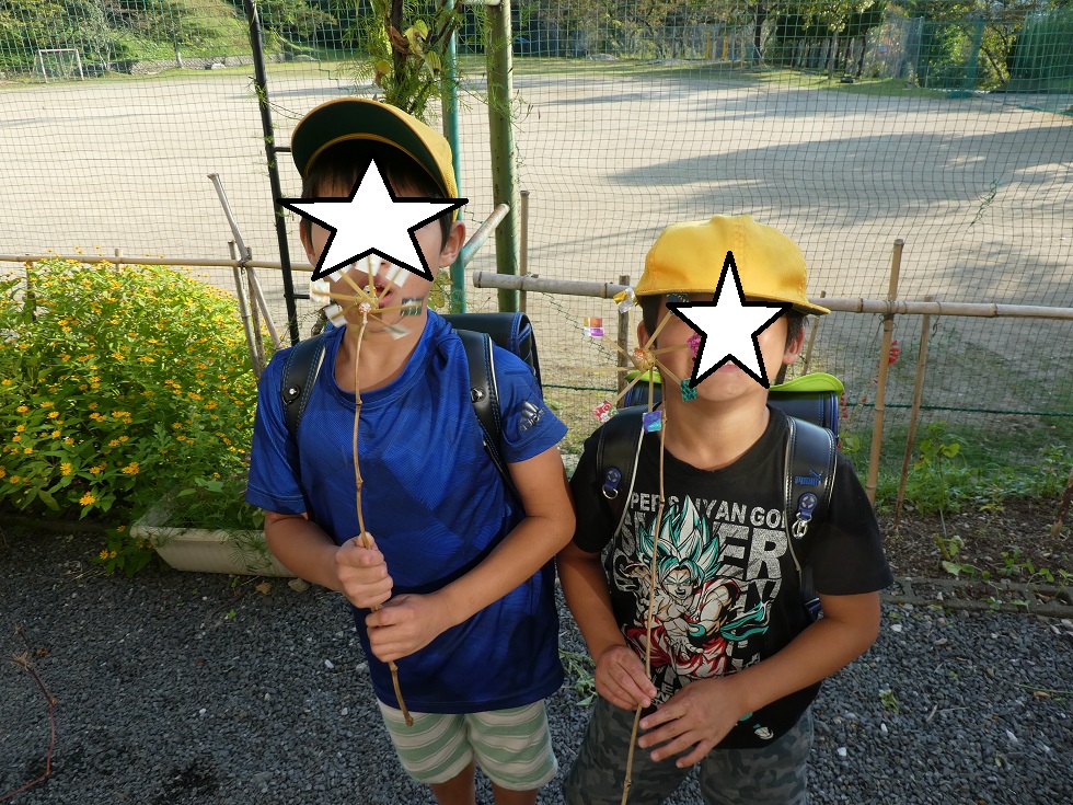 放課後学習会で草野さんという地域の方が1・2年生に竹の風車の作り方を教えてくださいました。