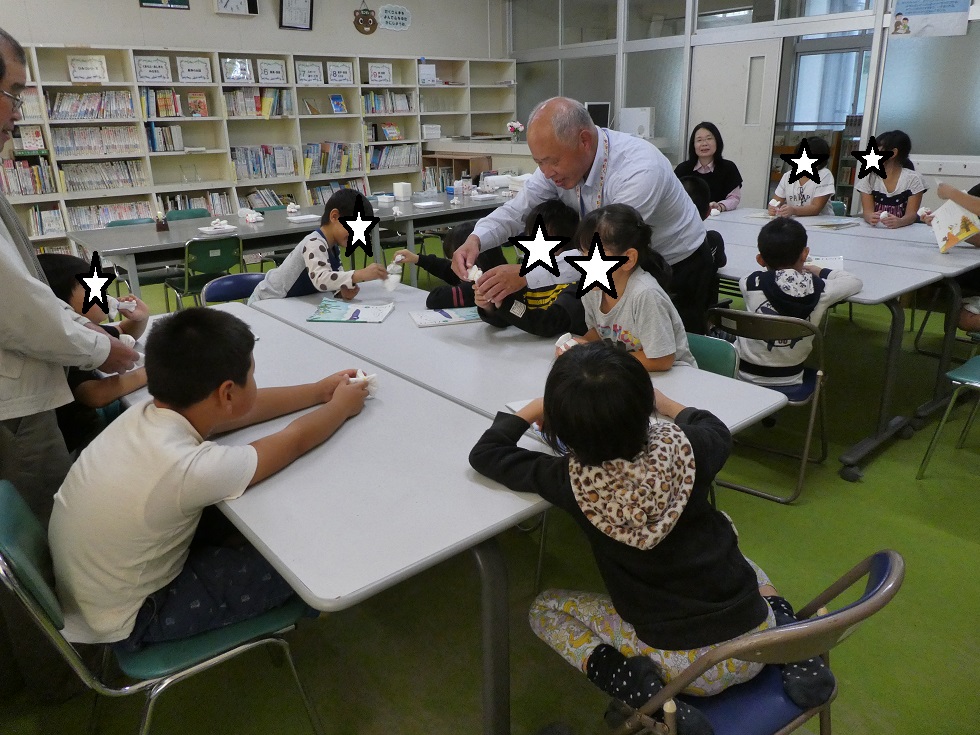 八代から浅野一登先生がいらっしゃって、放課後学習会の子どもたちにキッチンペーパーで作るかわいい犬の作り方を教えてくださいました。