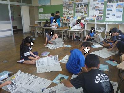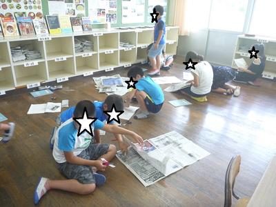 4・5年生が気になる記事を探してスクラップブックに貼り付けています。