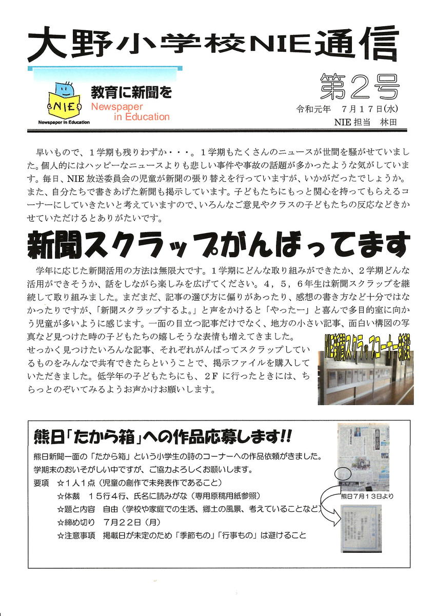 NIE活用で放送委員が、新聞の読み物資料(熊日童話)を昼の給食時間に放送で読みました。
