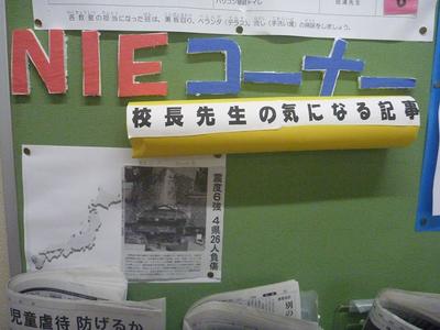 渡邉校長先生が気になる記事をNIEコーナーに掲示しています。