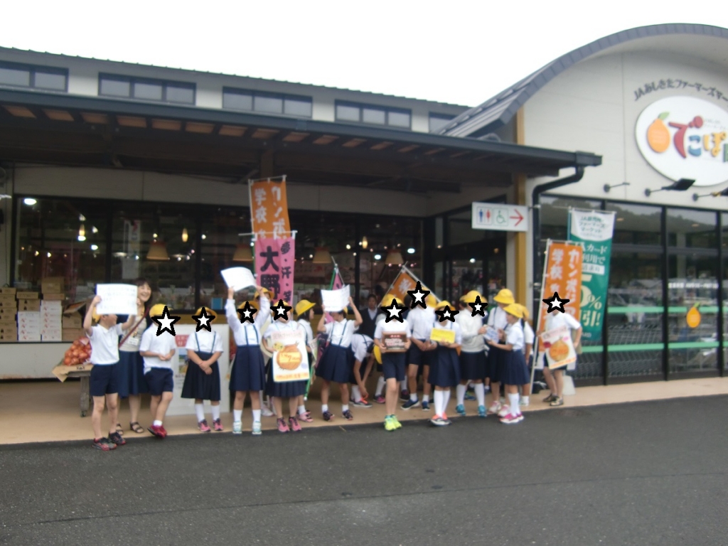 育てたサラダ玉ねぎを3年生以上の子どもたちが、ファーマーズでこぽん、田浦基幹支所、芦北地域振興局、芦北町役場、芦北警察署で販売しました。
