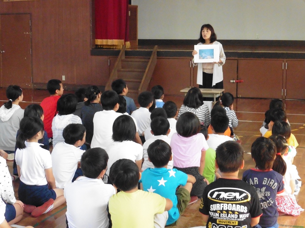 全校集会では、校長先生が「トウネン」という渡り鳥のお話をされました。