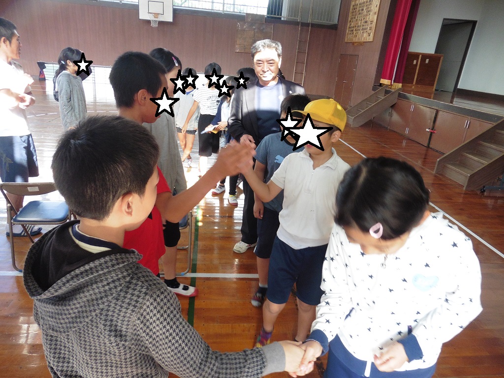 もっと仲良くなるために、6年生とみんなで握手をしました。