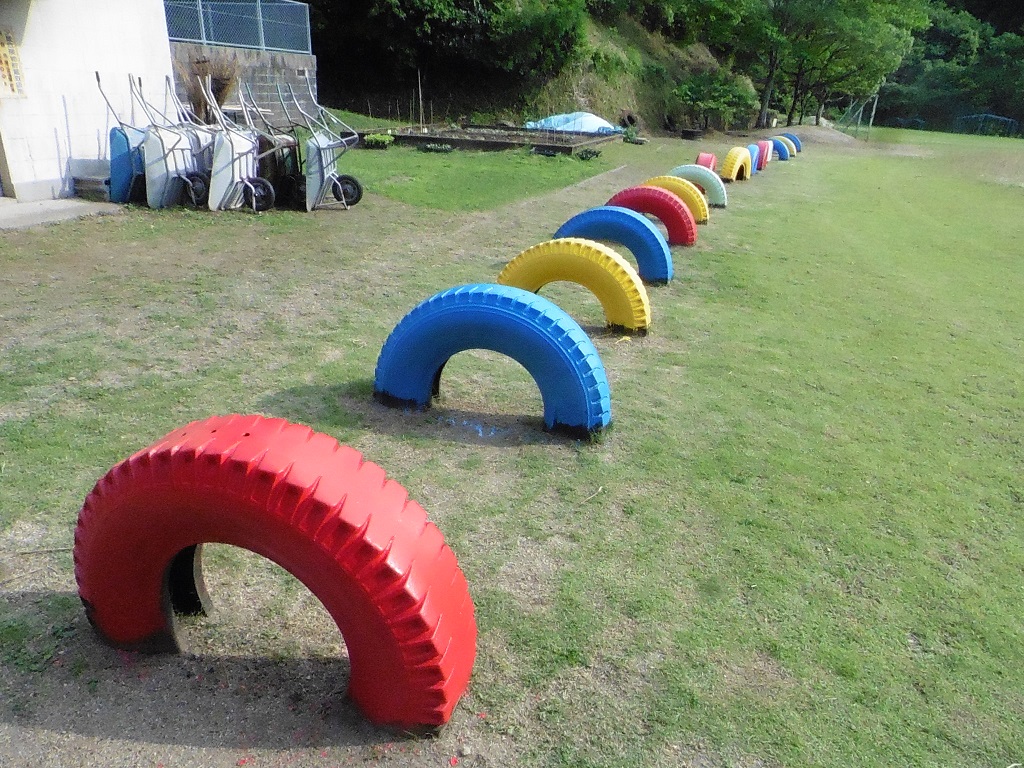 学校の遊具にペンキを塗って、くっきりきれいになりました。