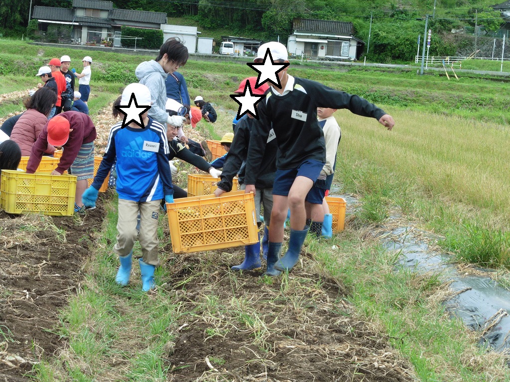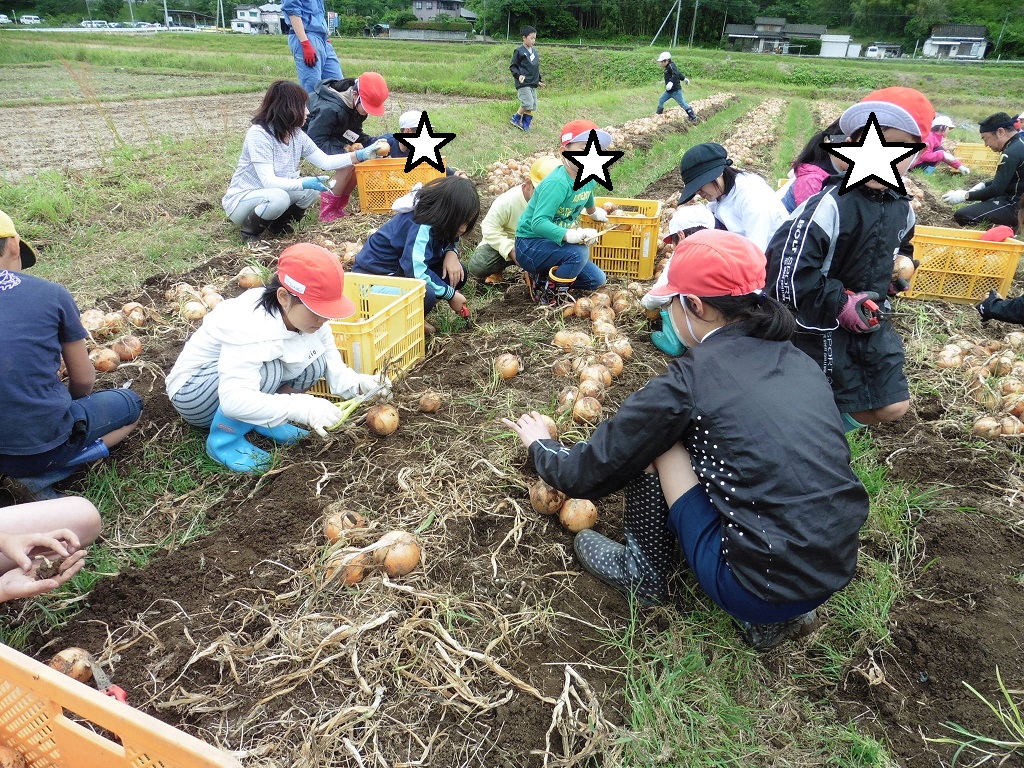 毎年行っているサラダ玉ねぎを全校児童で収穫しました。