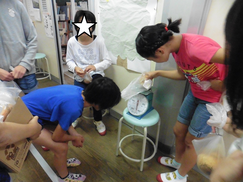 収穫したサラダ玉ねぎを3年生以上で袋詰めにしました。