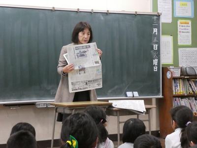 4・5年生はオープン参観日に来てくださった方々と一緒にNIEをしました。