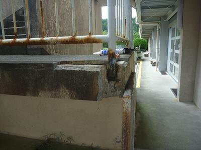 体育館の二階に続く階段がボロボロになっているのを見て、学校の別の施設の工事に来られている方が修理をしてくだいました。