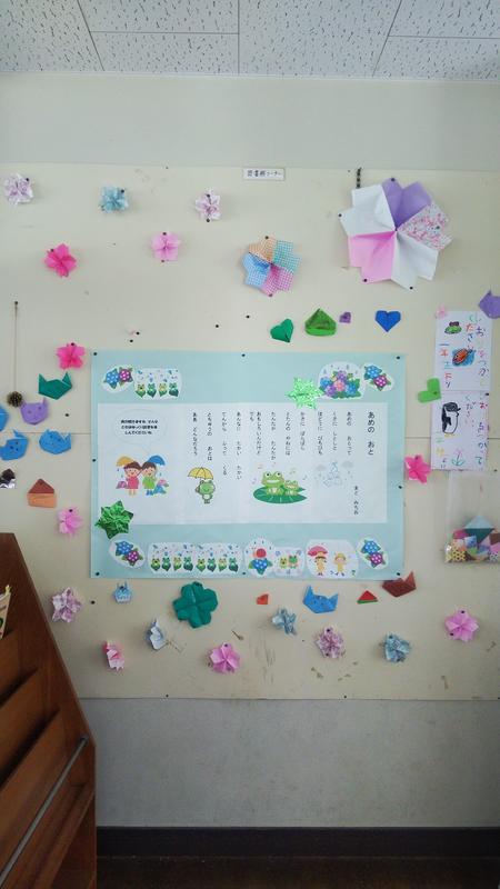 1年生が折り紙でたくさんの栞を作ってプレゼントしました。