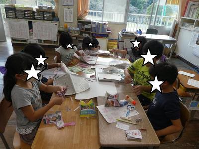 新聞にあった知らない言葉調べや、文字探し、同じコーナーを三日分貼り付けて比べたり、虫や動物がある記事を見つけたり、といろんなことに取り組んでいました。