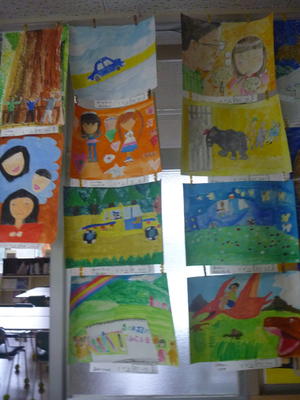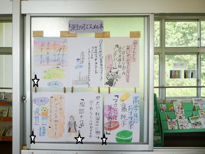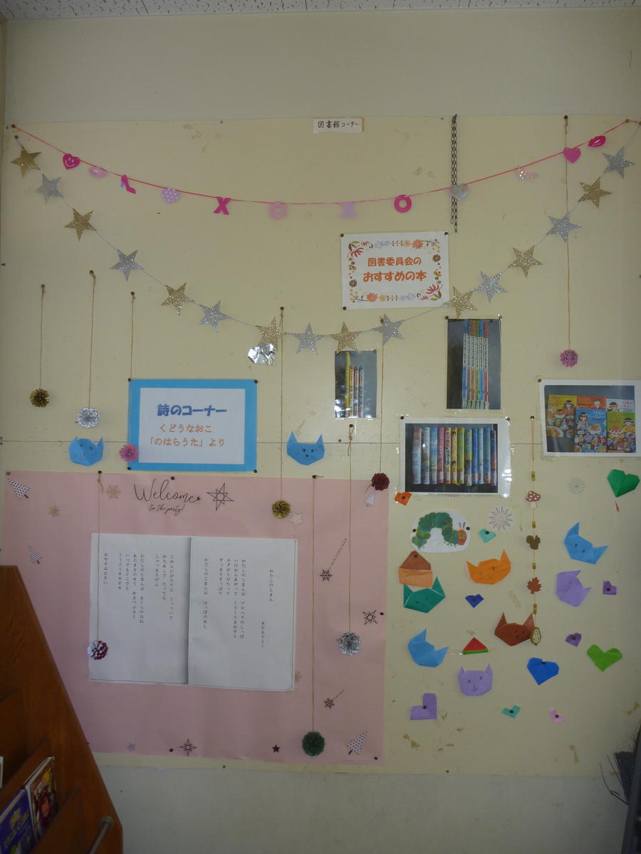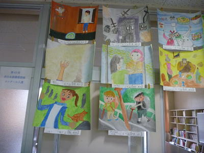 図書室の使い方、読書感想画の紹介、みつばち文庫の紹介です。