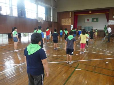 今日は雨のため、体育館で運動会の全体練習をしました。