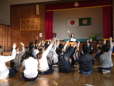 今日の全校集会は、図工の表彰がありました。たくさんの作品が入賞しています。