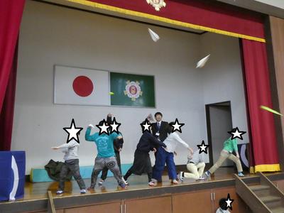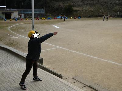 笑顔わくわくプロジェクトで、昼休みに紙飛行機大会が行われました。