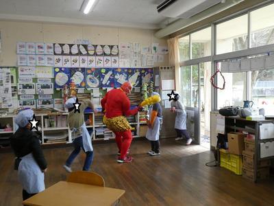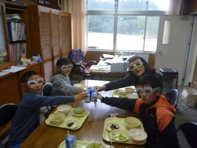 今日は一月生まれのみんなが校長室で給食をたべました。