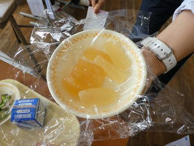晩白柚の分厚い皮を、屋野先生が甘く煮込んで、子どもたちにプレゼントしてくださいました。