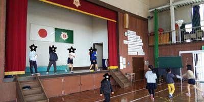 大野小では授業の体育の時間や全校体育の時間に柔軟体操をしっかり取り入れています。