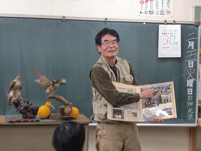 熊本野鳥の会の高野茂樹先生と芦北野鳥の会の大岩さんに来ていただき、大野の野鳥について勉強しました。