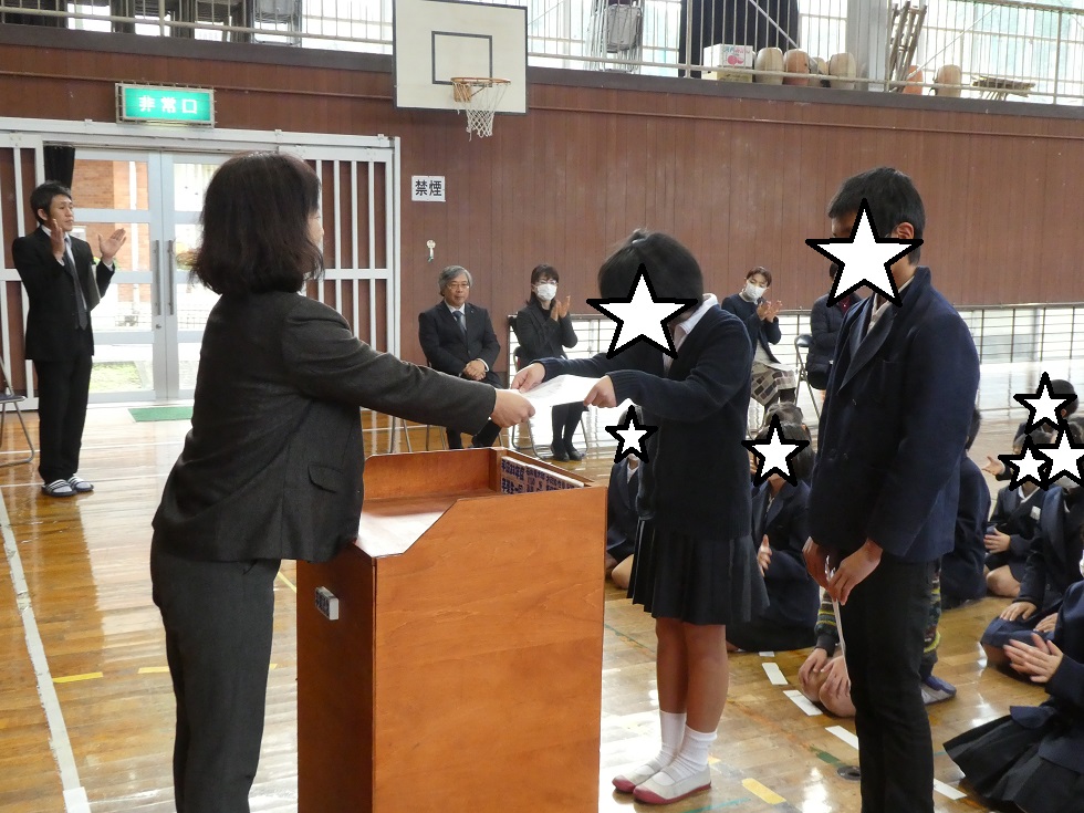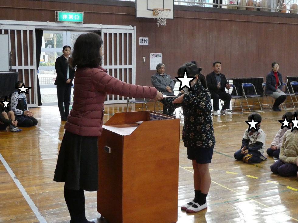 最初に、読書感想画とソフトバレー教室の表彰がありました。