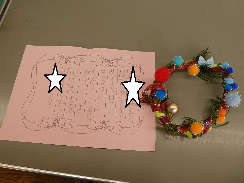 1年生がお世話になっている先生方にかわいいリースを作ってくれました。