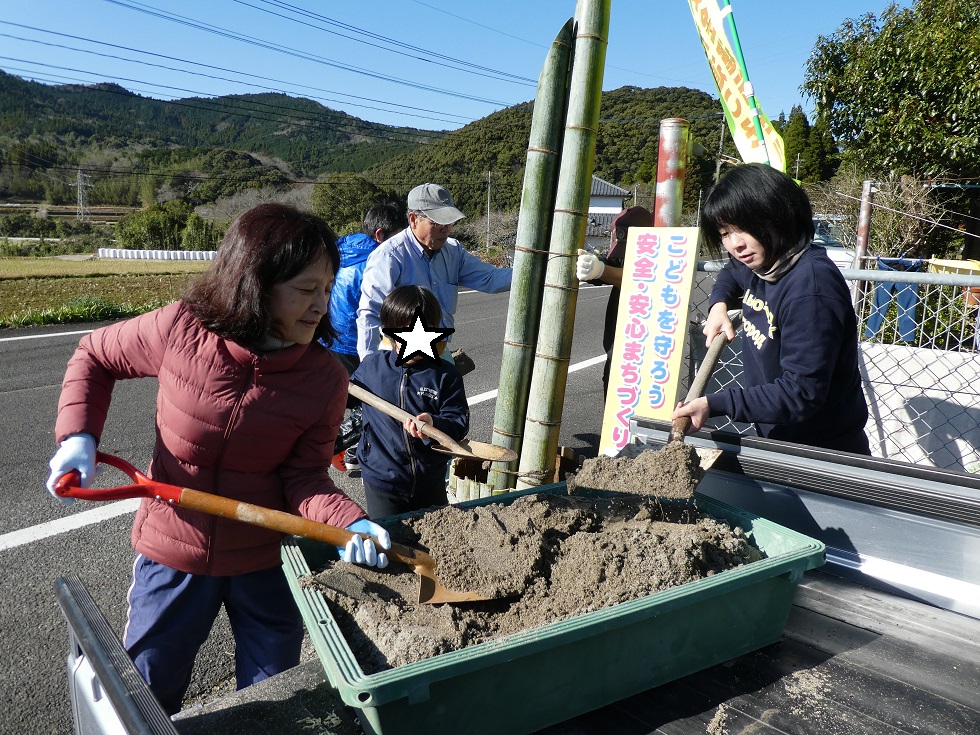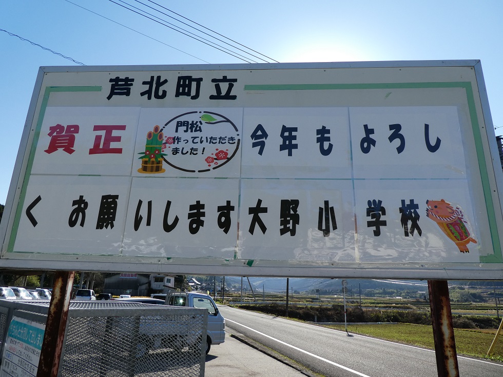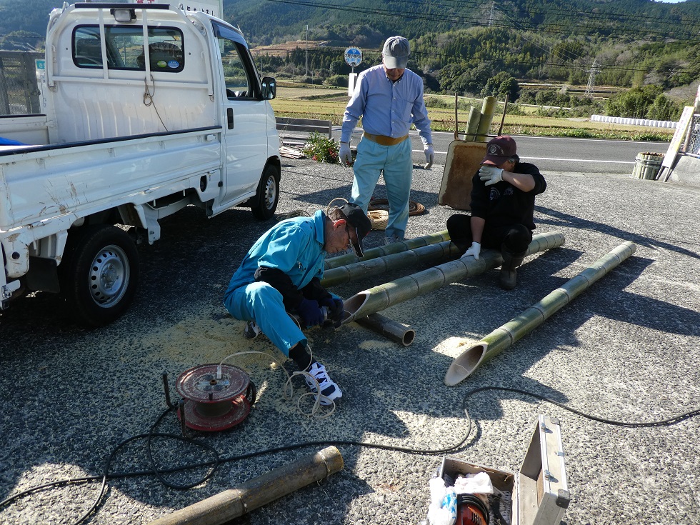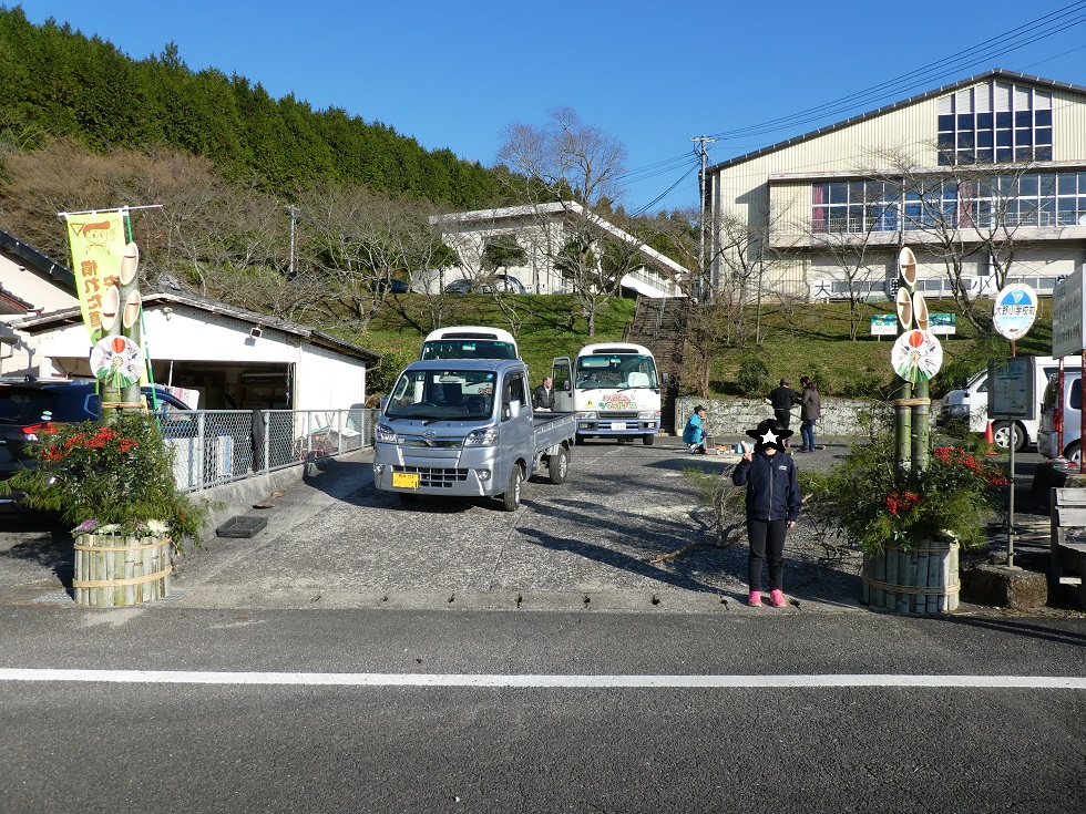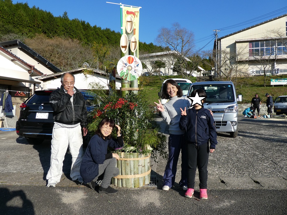 大きな大きな門松です。みんなに見てもらえるようにバス停に飾りました。