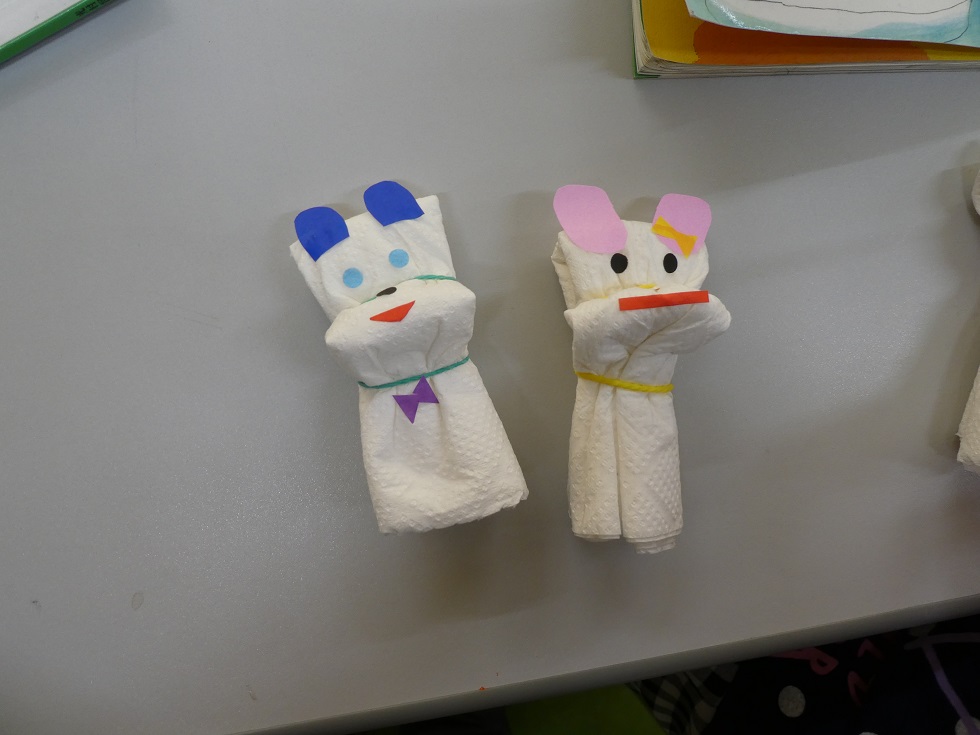 八代から浅野一登先生がいらっしゃって、放課後学習会の子どもたちにキッチンペーパーで作るかわいい犬の作り方を教えてくださいました。