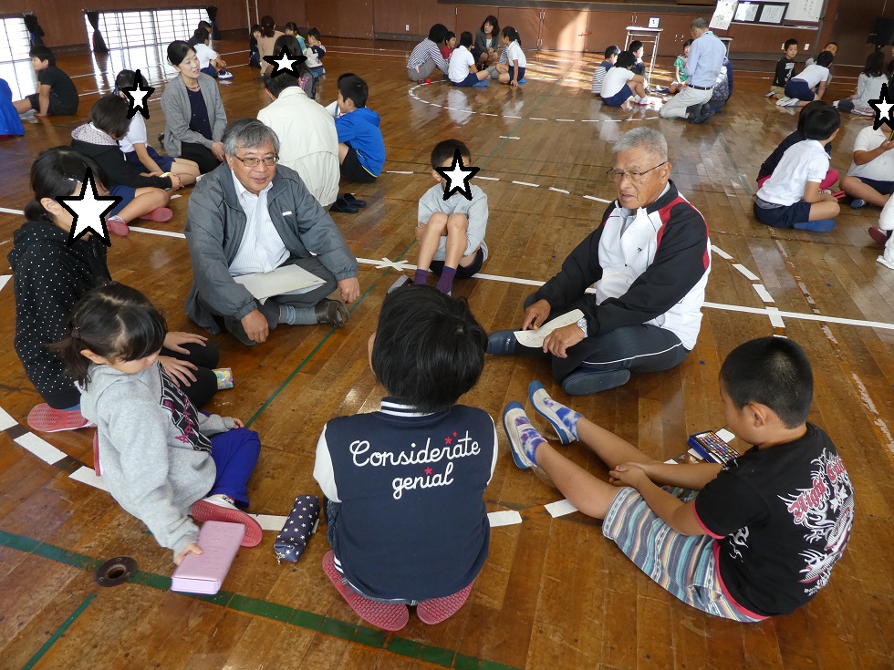 放課後学習会で草野さんという地域の方が1・2年生に竹の風車の作り方を教えてくださいました。