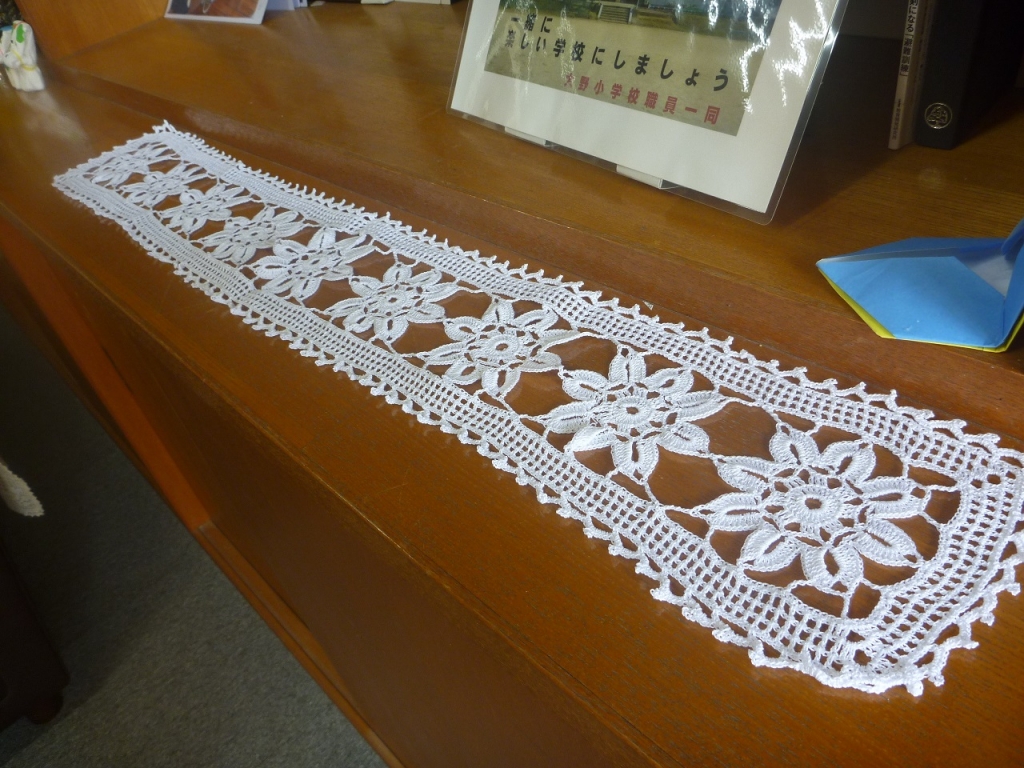 学校評議員の才荷様より、手作りの美しいレースをいただきました。
