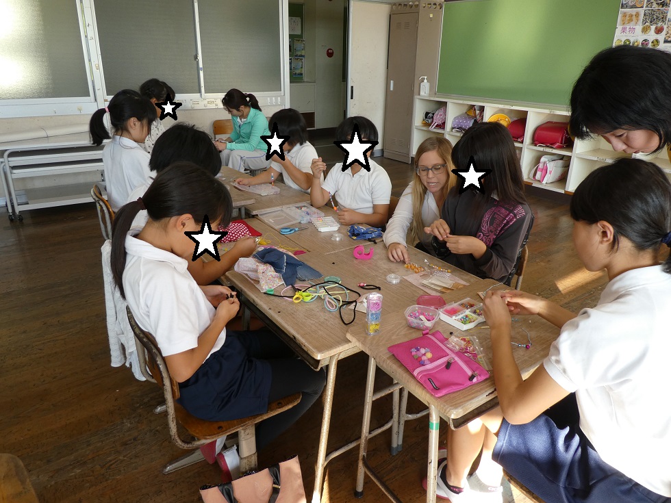 カルチャークラブの今日の活動はアクセサリーの手作りです。