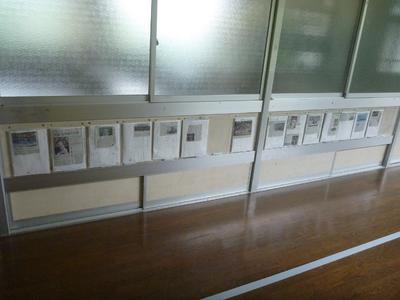 毎朝、放送委員が新聞を入れ替えて掲示しています。