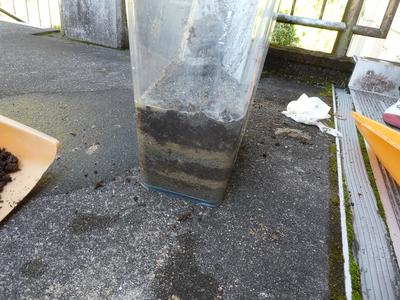 6年生は理科の授業で、自分たちで地層作りにチャレンジしました。