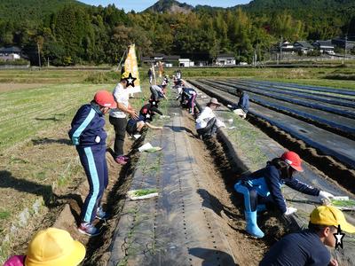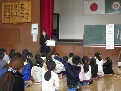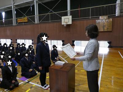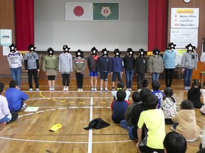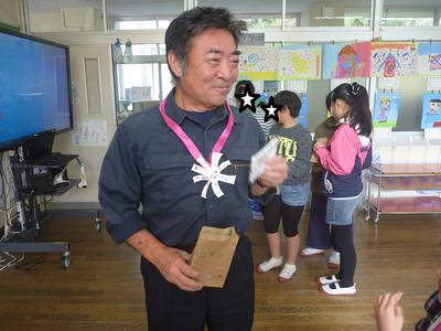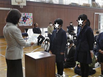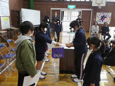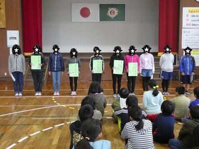 4年生が実施した笑顔わくわくプロジェクトの「支援米の収穫量はどんだけ~」のニアピン賞の表彰もありました。