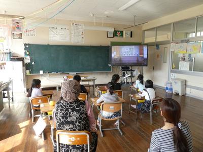 遠原さんが一年生のキャベツのお世話に来て下さったので、学習発表会の振り返り(上映会)に参加していただきました。