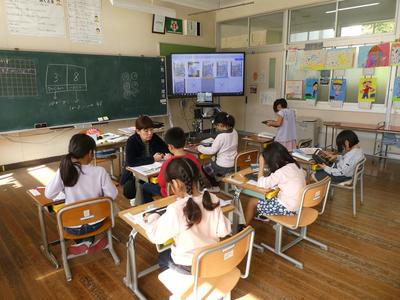 自分の考えを画像に映して電子黒板に提出する方法に慣れました。全員の考えをパッとみたり、比較したりすることができるので、授業の時間短縮に役立っています。